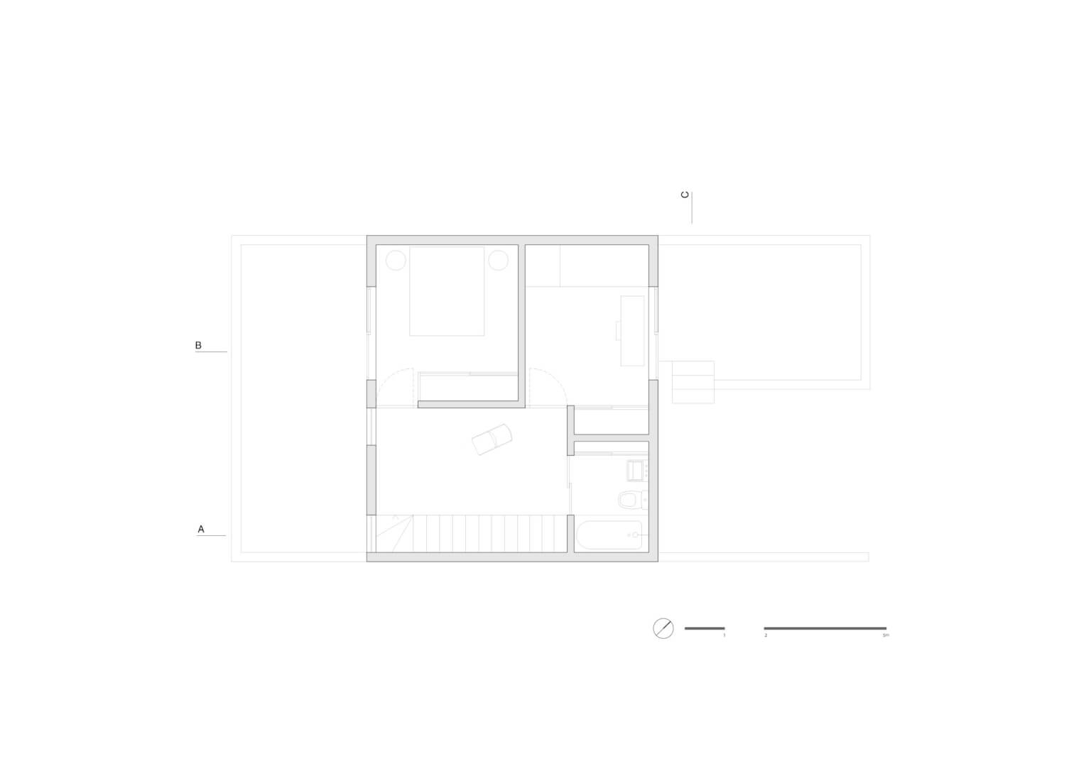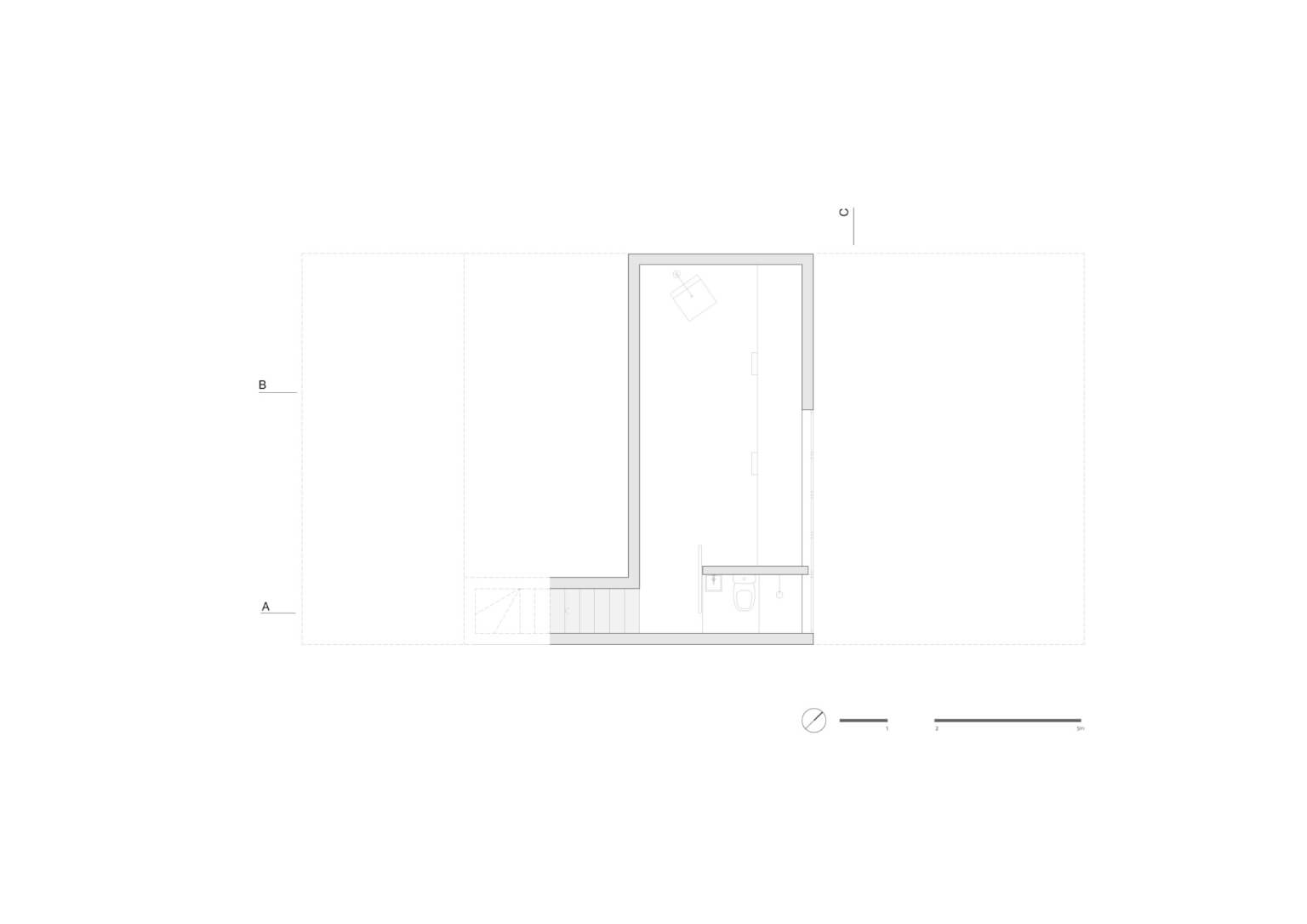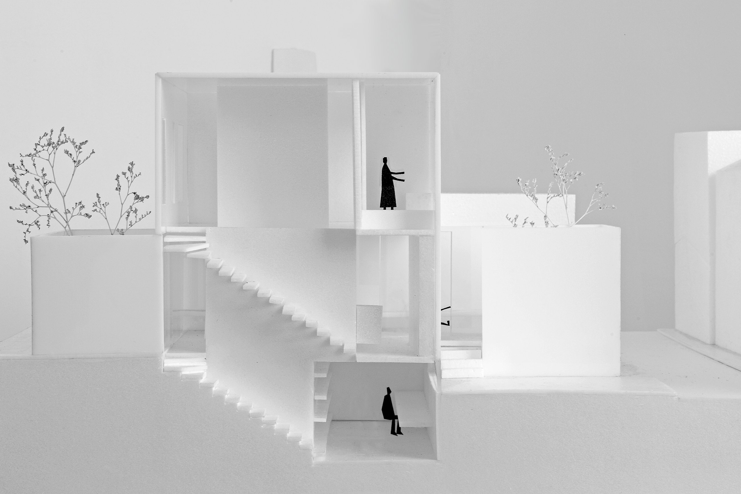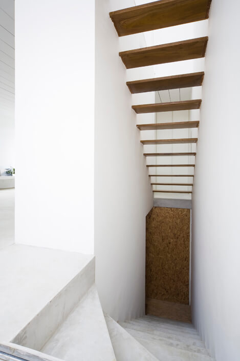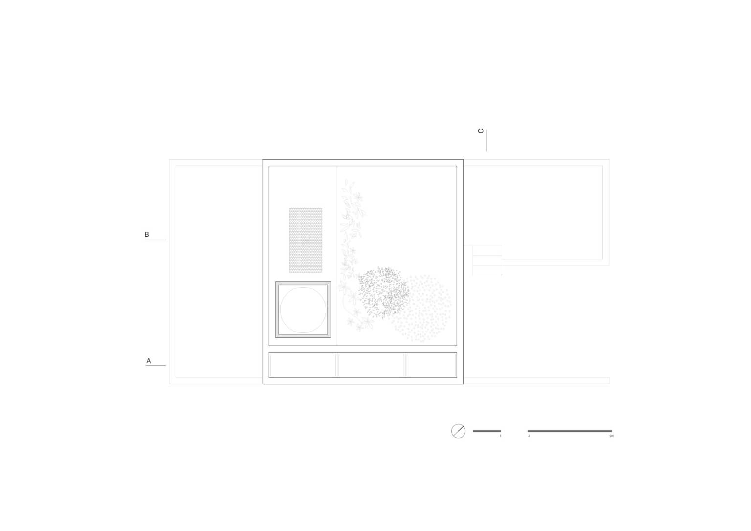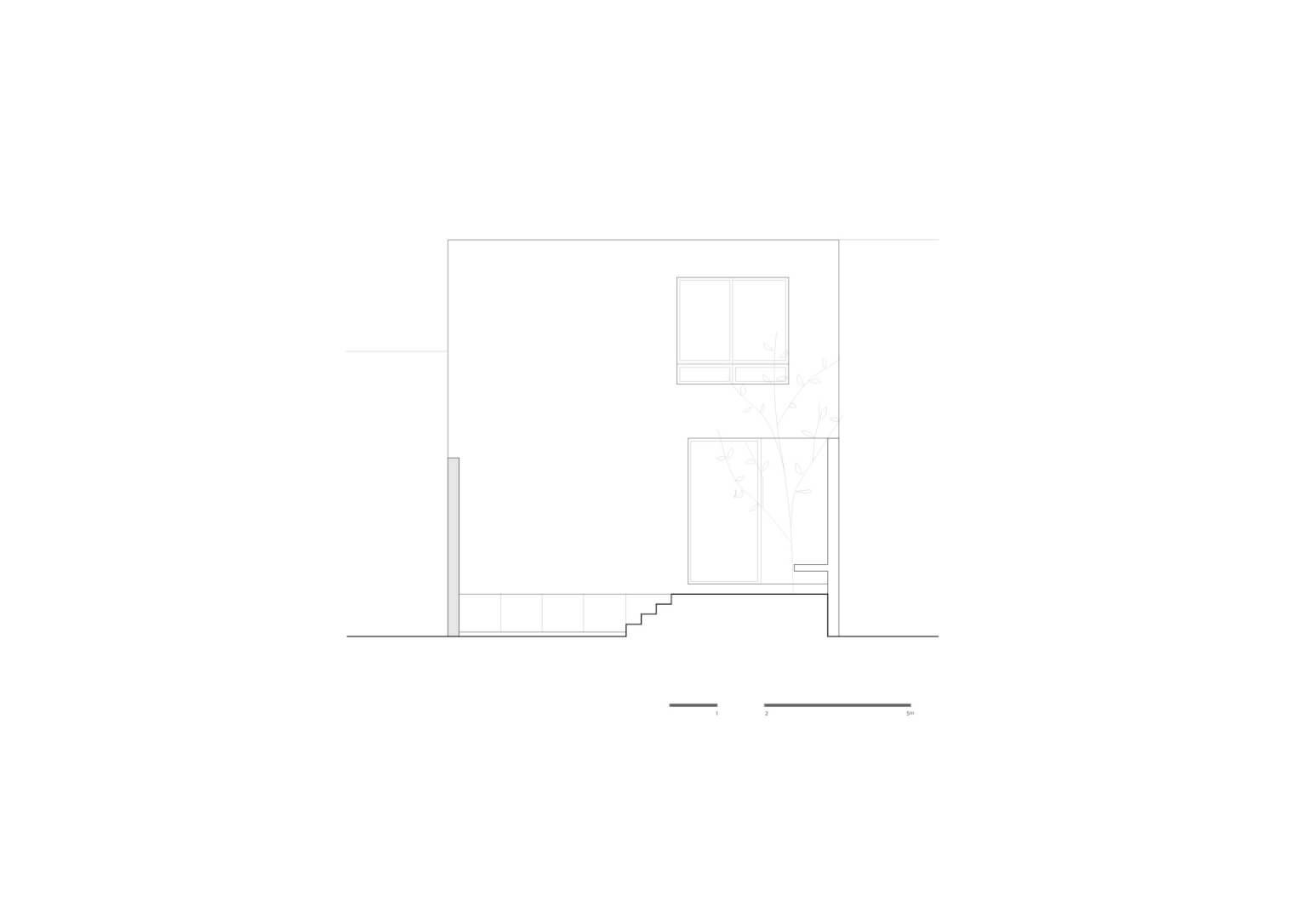 Contradição: uma grande casa num pequeno terreno; ele quer privacidade, ela quer uma casa aberta e luminosa. Solução: a casa se fecha para o exterior e abre totalmente para jardins internos, o espaço interno e externo se misturam. Resultado: Um cubo branco rodeado de plantas e luz.